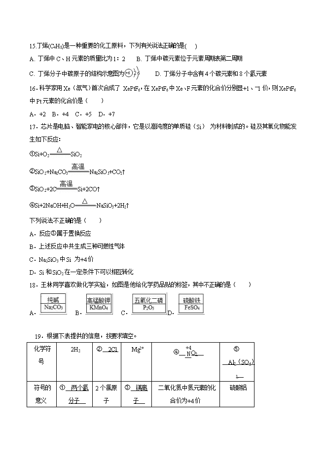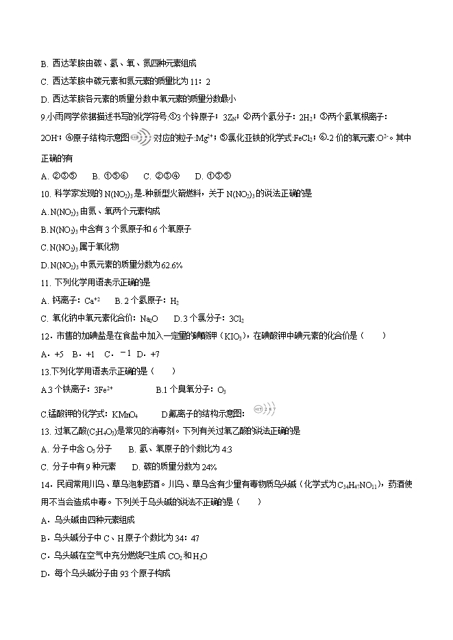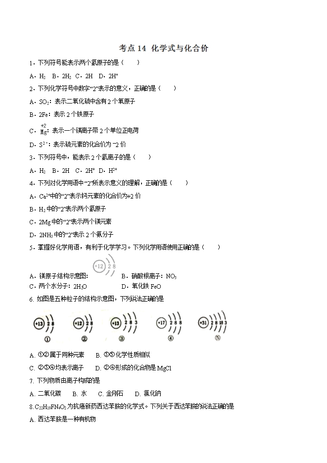 【内容简介】2019年九年级化学中考考点突破考点14 化学式与化合价(原卷版)