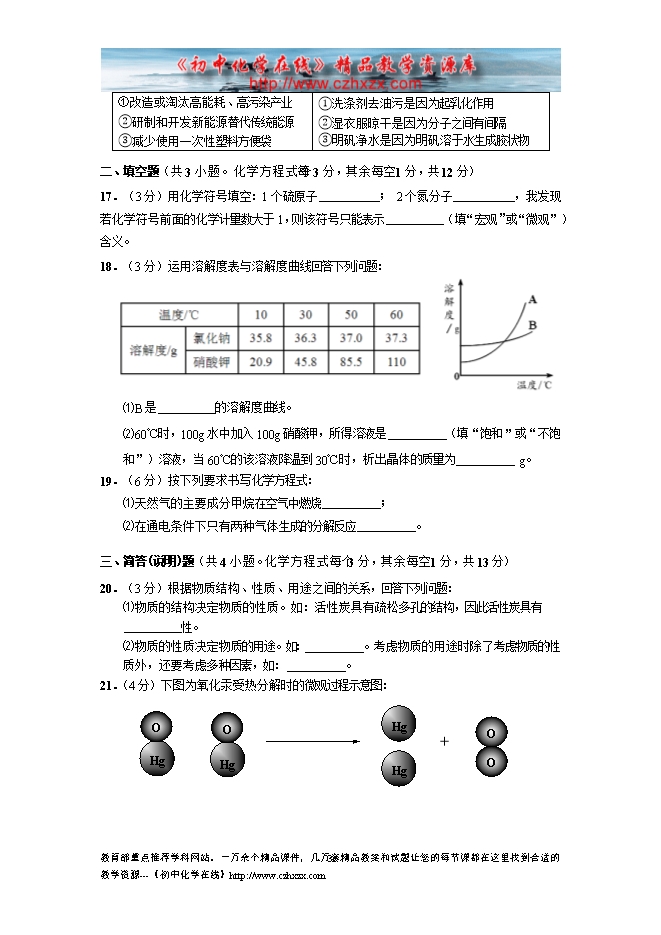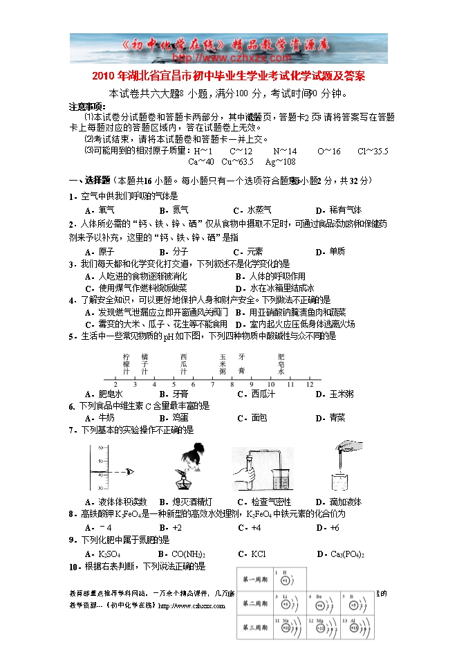 2010年湖北省宜昌市初中毕业生学业考试化学试题及答案