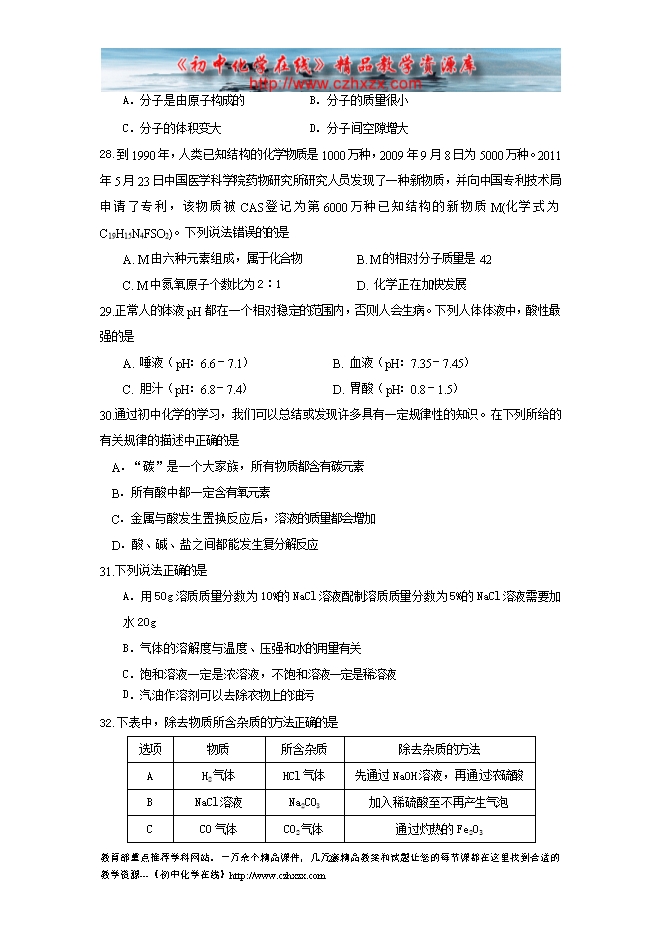 - 下一份试卷:2011年无锡市初中毕业生学业考试化学试题及答案