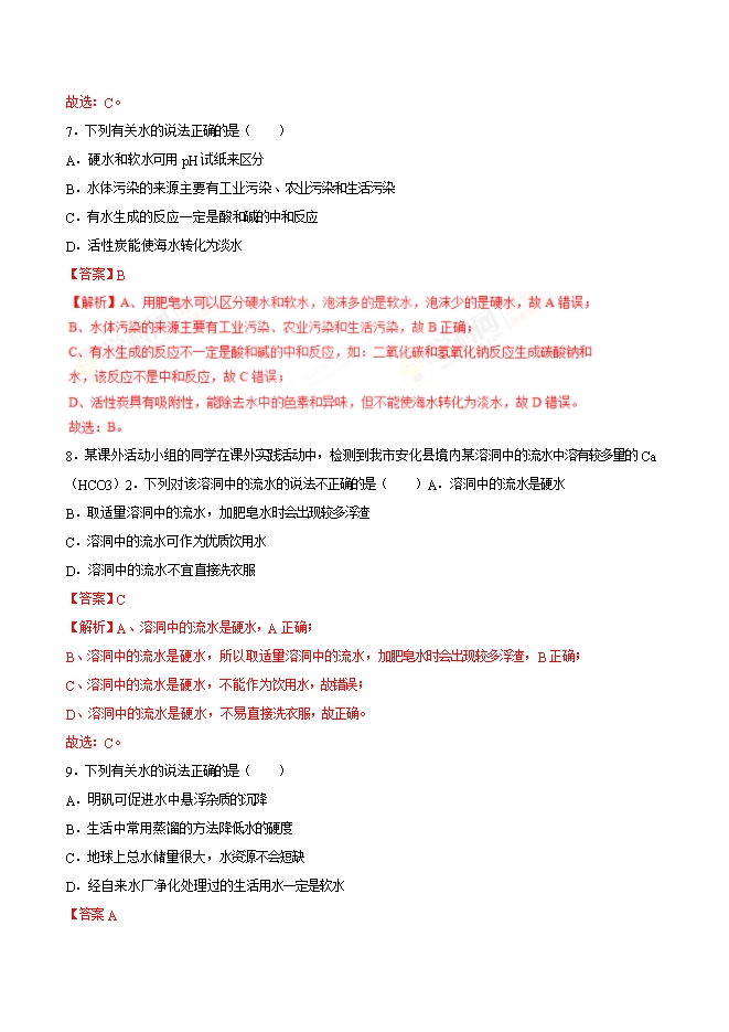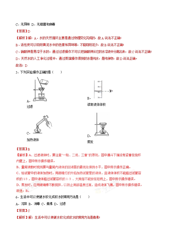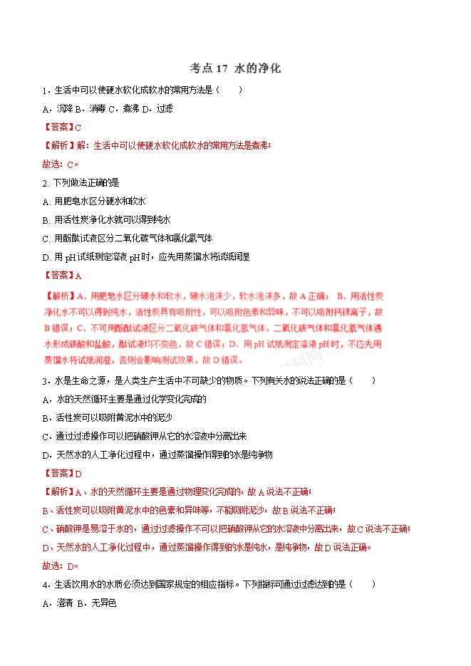 【内容简介】2019年九年级化学中考考点突破考点17 水的净化(解析版)