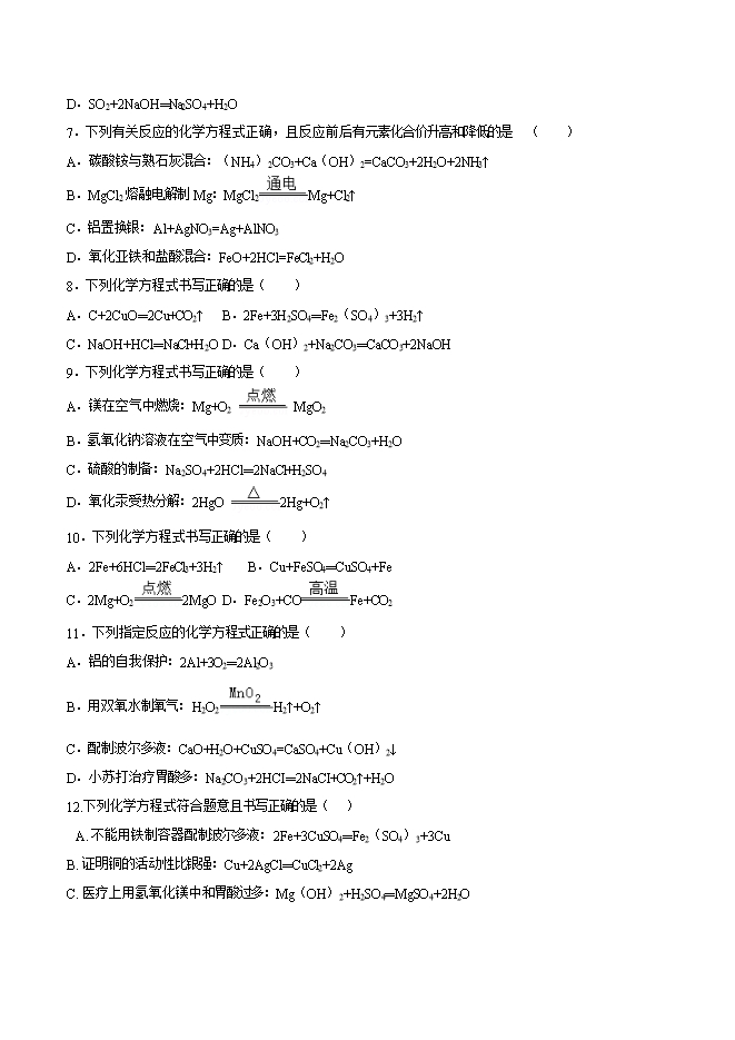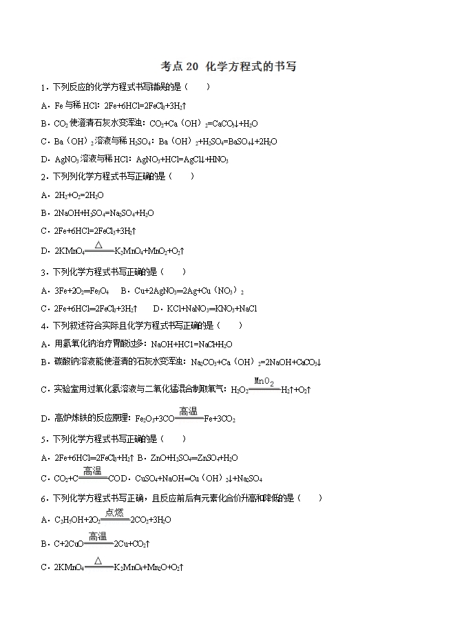 【内容简介】2019年九年级化学中考考点突破考点20 化学方程式的书写(原卷版)