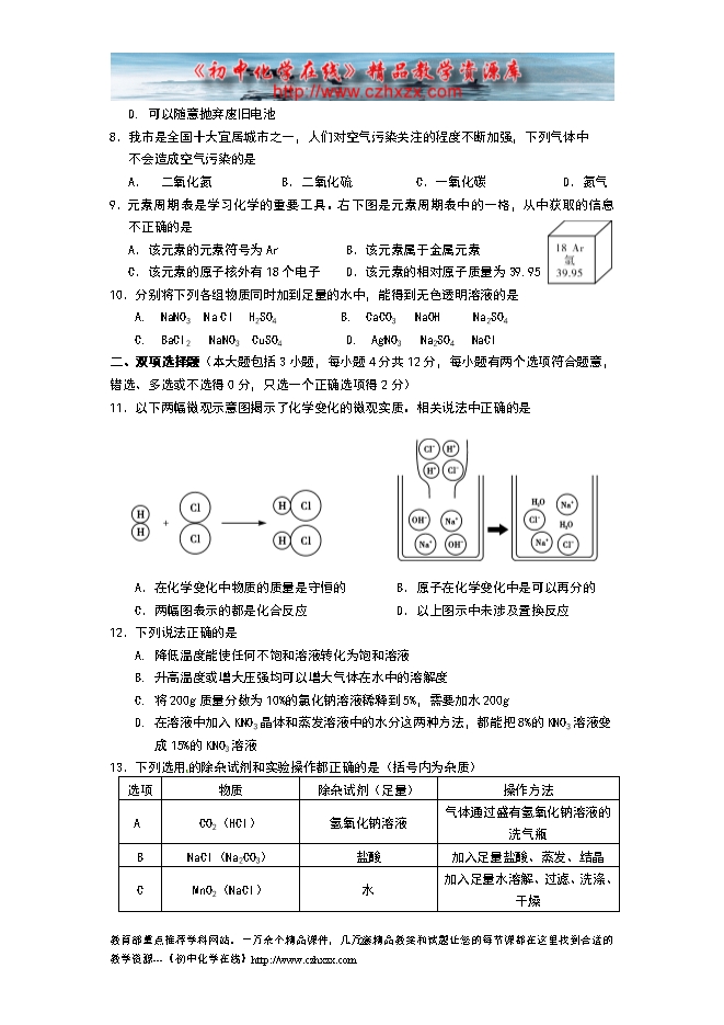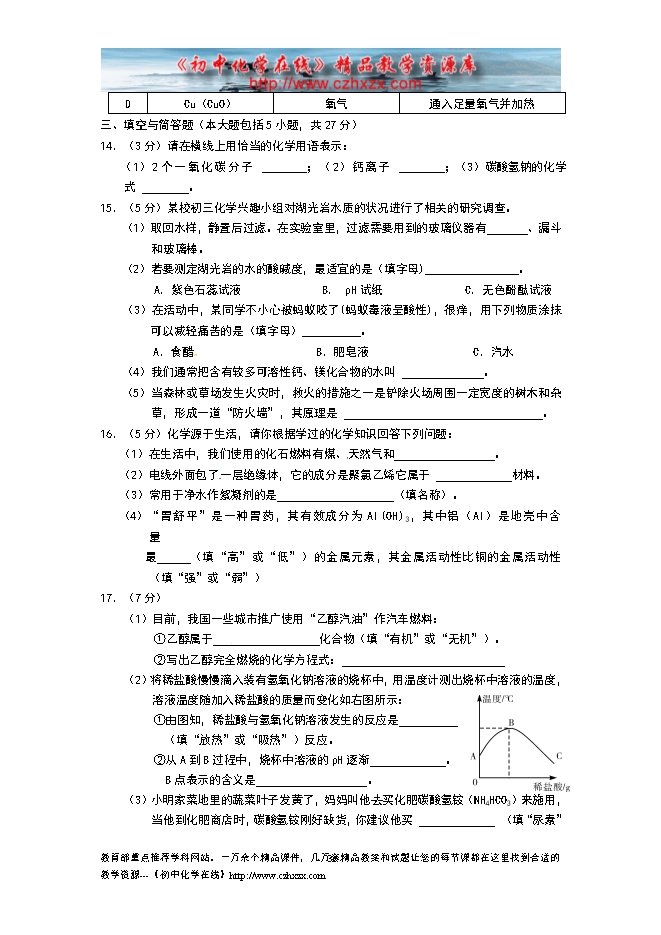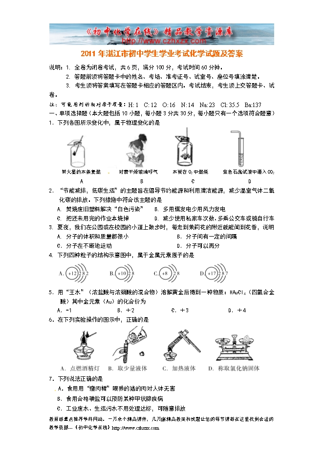 - 下一份试卷:2011年襄阳市初中学生学业考试化学试题及答案