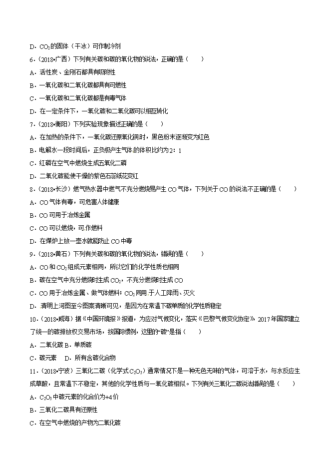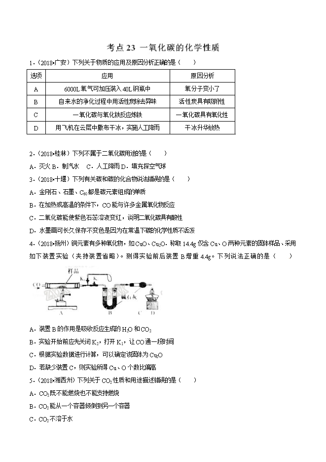 【内容简介】2019年九年级化学中考考点突破考点23 一氧化碳的化学性质(原卷版)