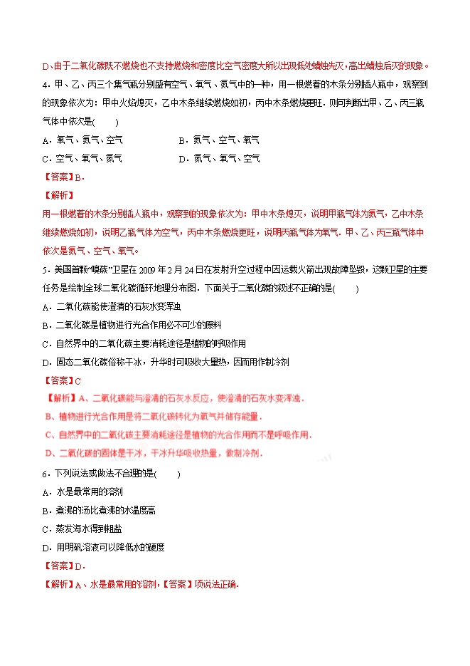 2019年九年级化学中考考点突破考点24 CO2的性质(解析版)