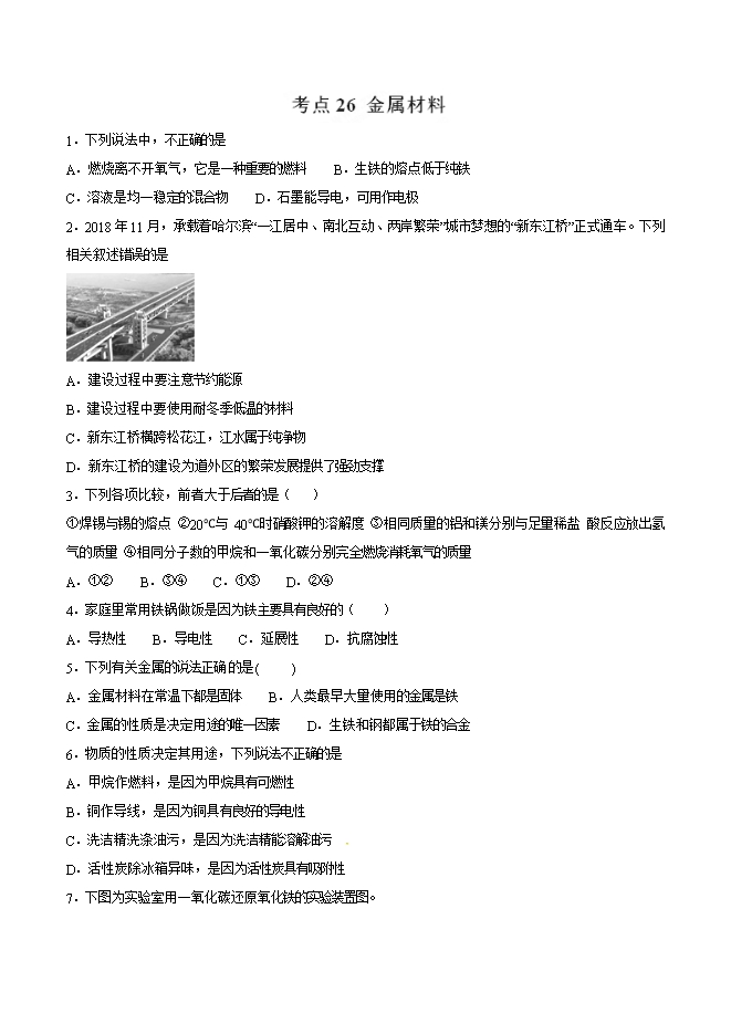 【内容简介】2019年九年级化学中考考点突破考点26 金属材料(原卷版)