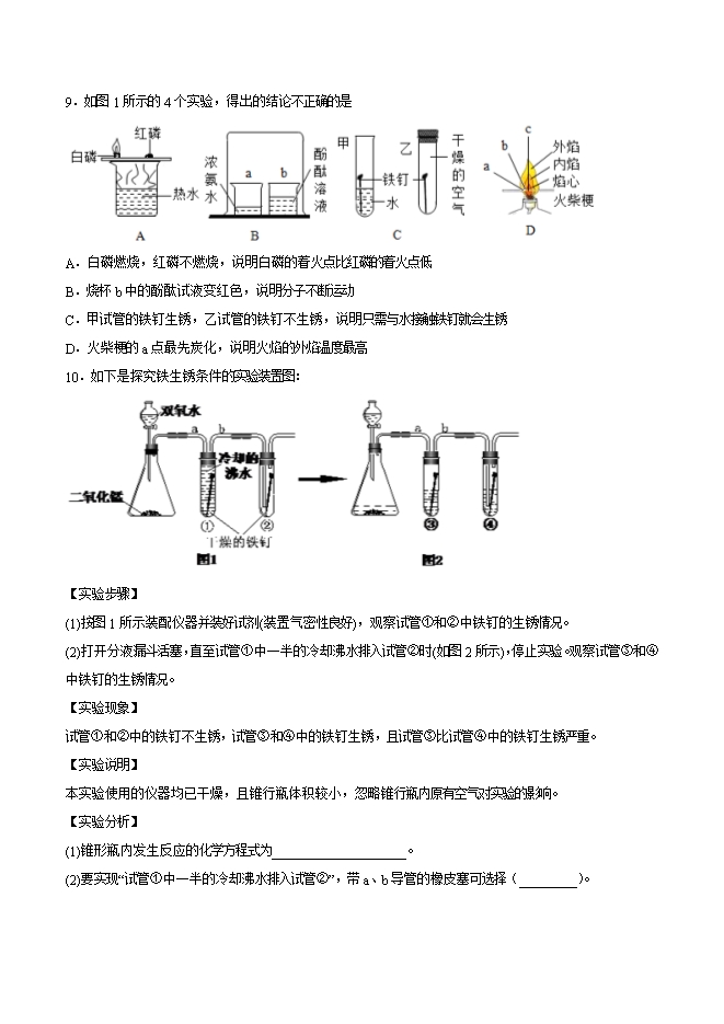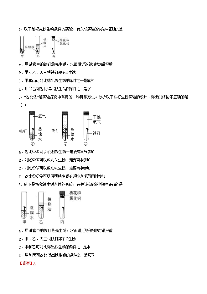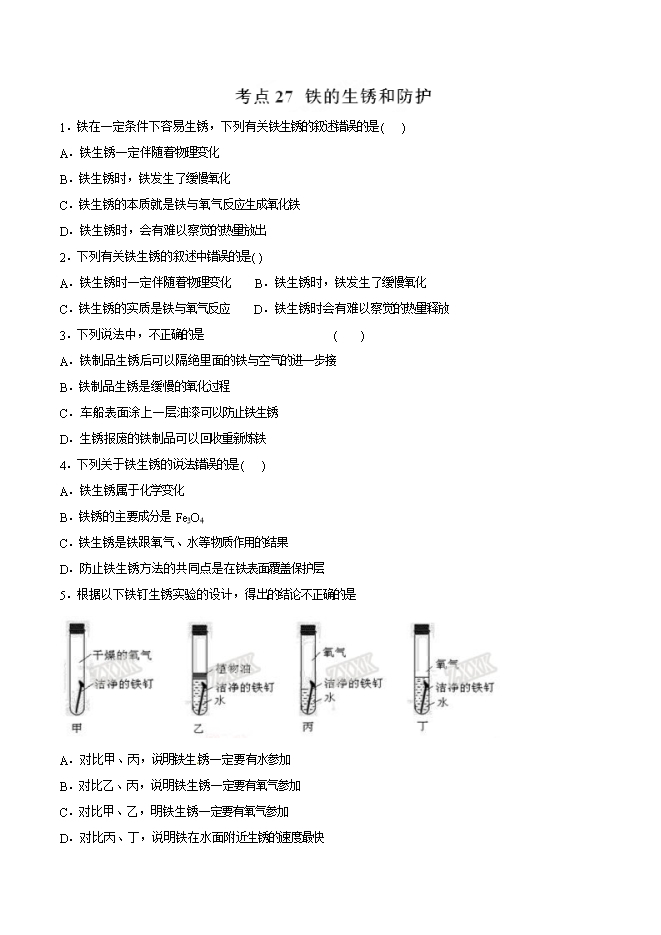 【内容简介】2019年九年级化学中考考点突破考点27 铁的生锈和防护(原卷版)