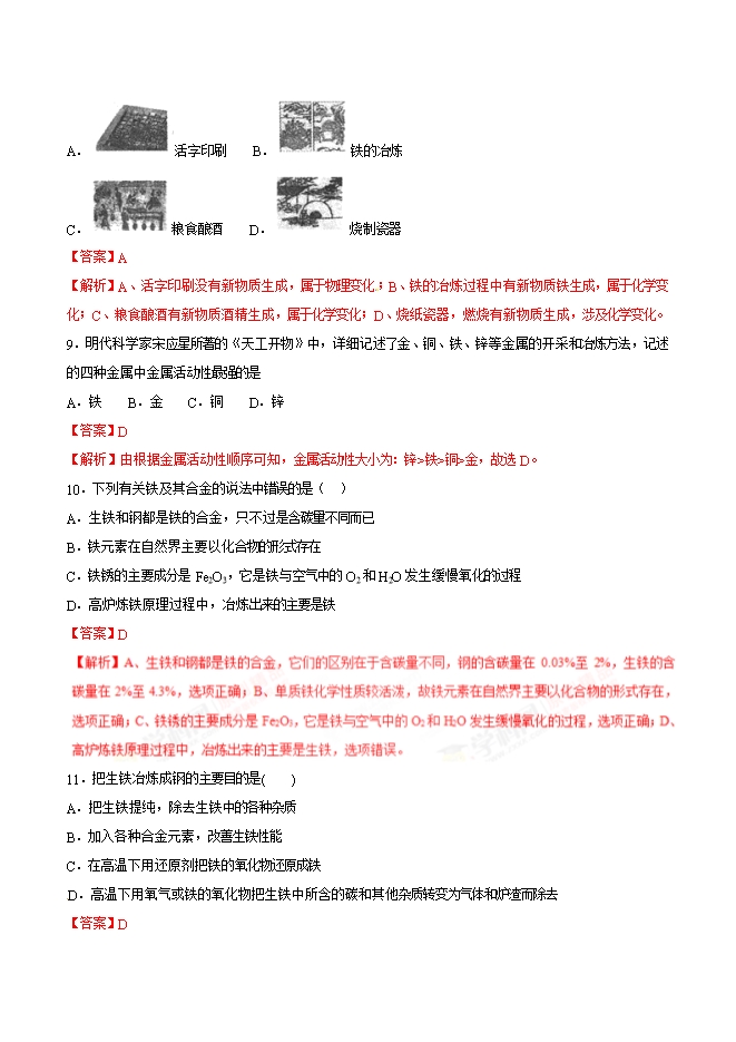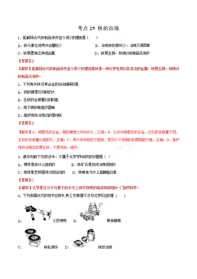 【内容简介】2019年九年级化学中考考点突破考点29 铁的冶炼(解析版)