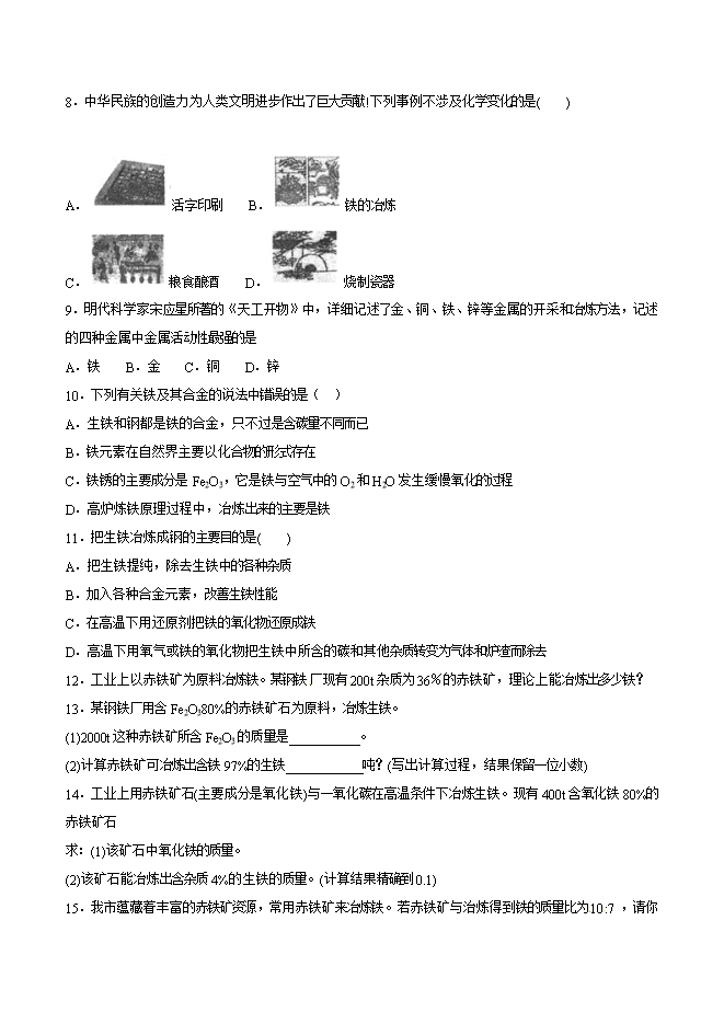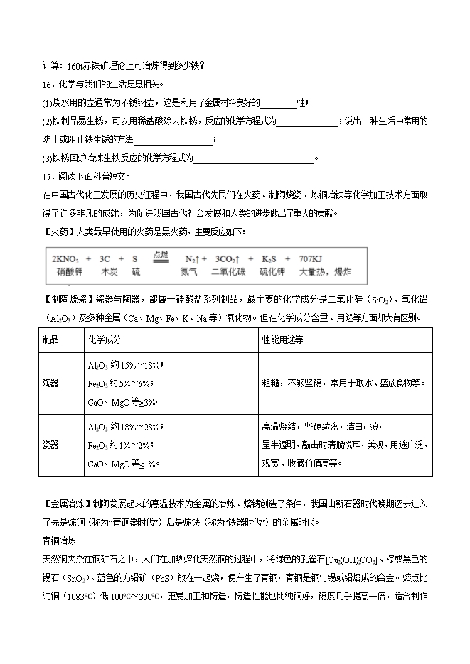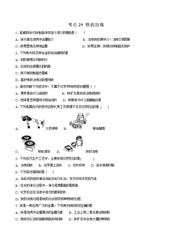 【内容简介】2019年九年级化学中考考点突破考点29 铁的冶炼(原卷版)