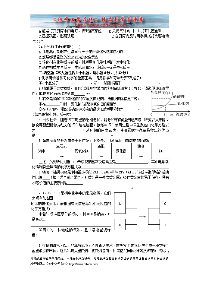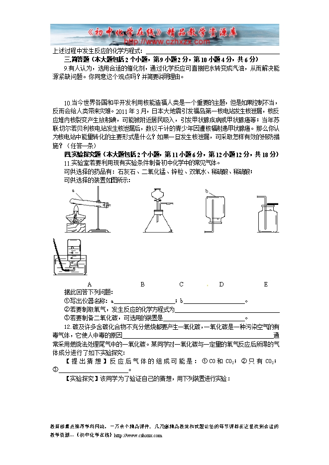 - 下一份试卷:2011年江苏省徐州市初中学生学业考试化学试题及答案