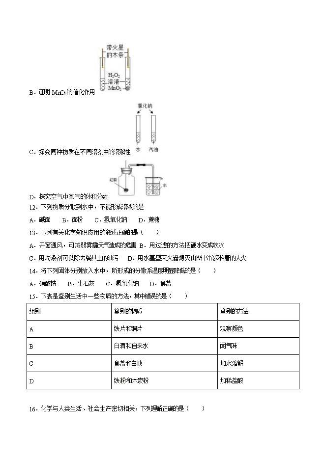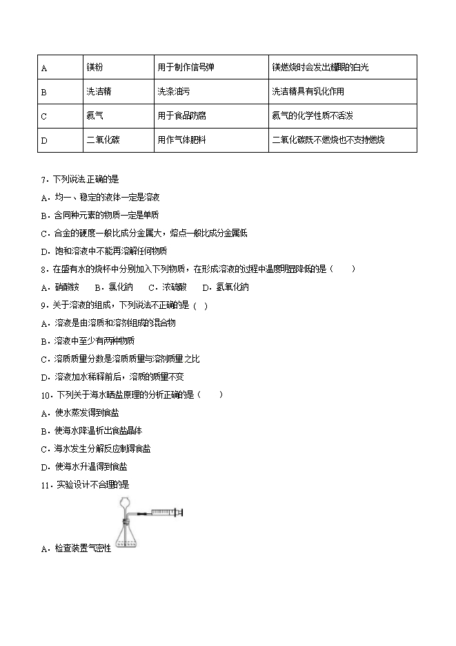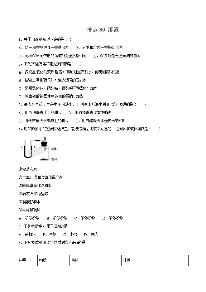 【内容简介】2019年九年级化学中考考点突破考点30 溶液(原卷版)