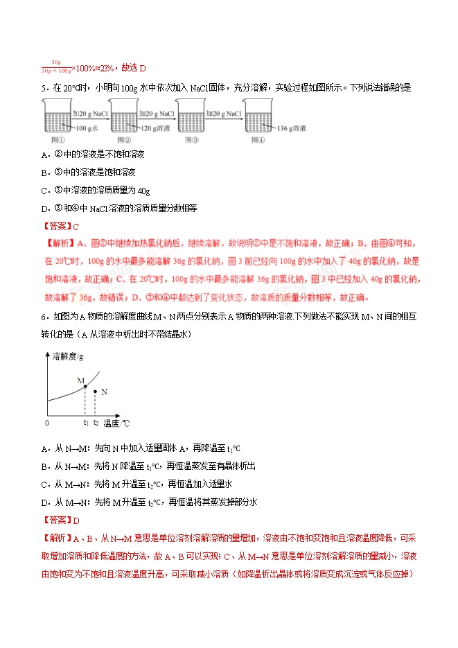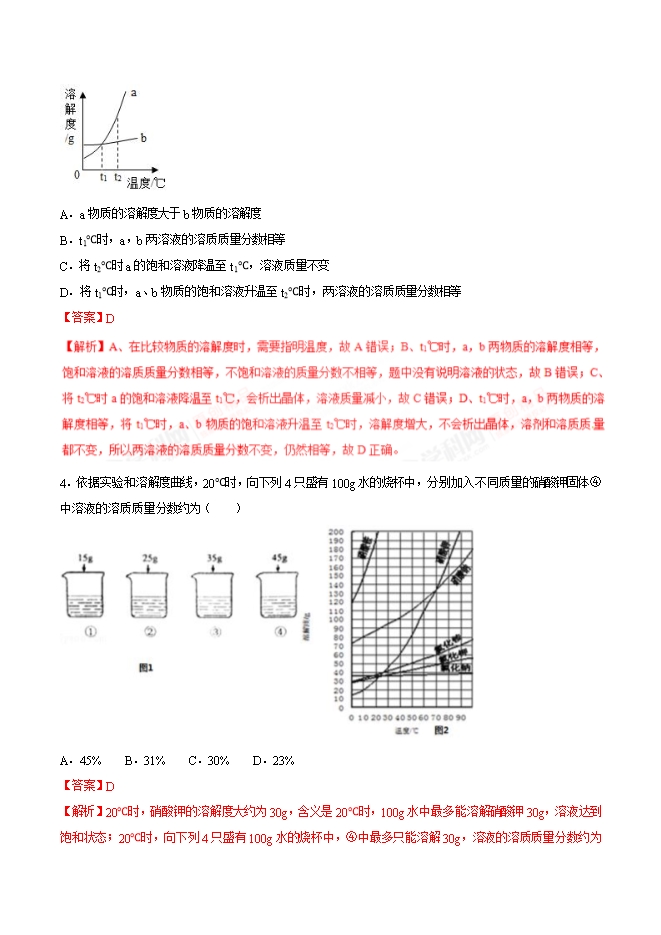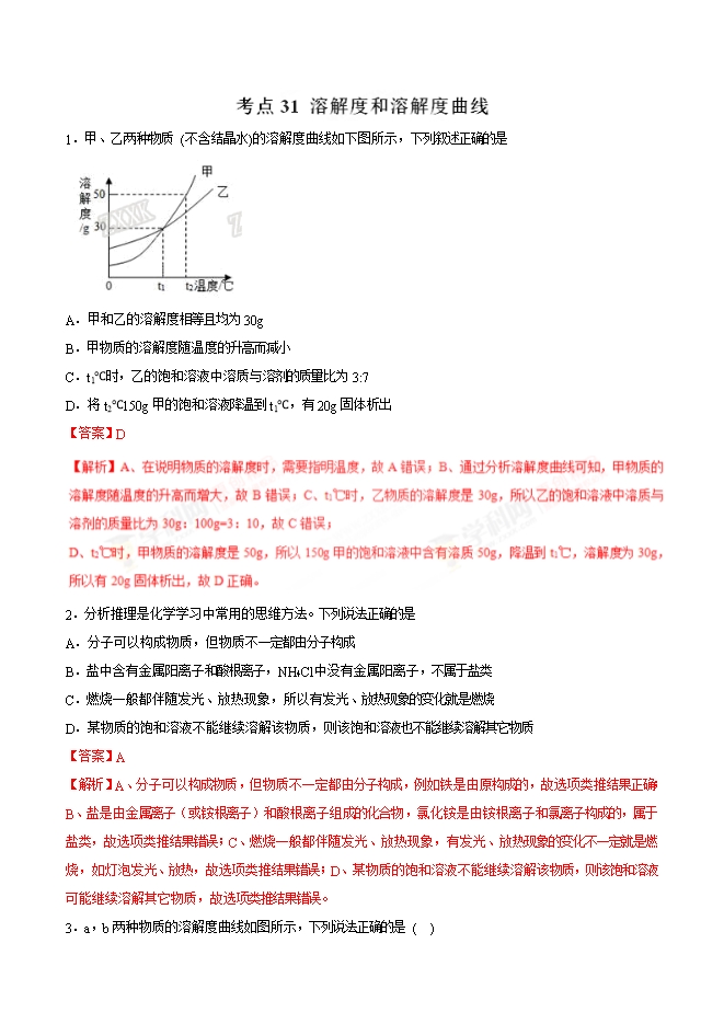 【内容简介】2019年九年级化学中考考点突破考点31 溶解度和溶解度曲线(解析版)