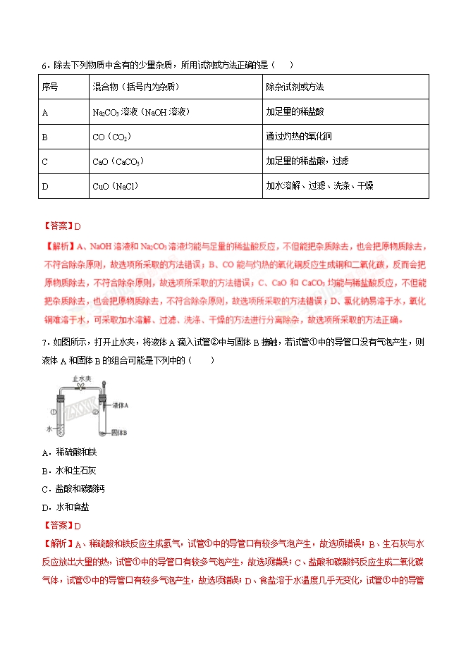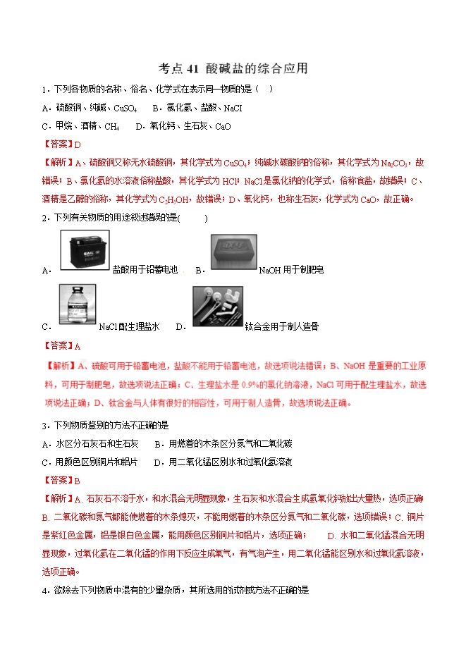 【内容简介】2019年九年级化学中考考点突破考点34 酸碱盐的综合应用(解析版)