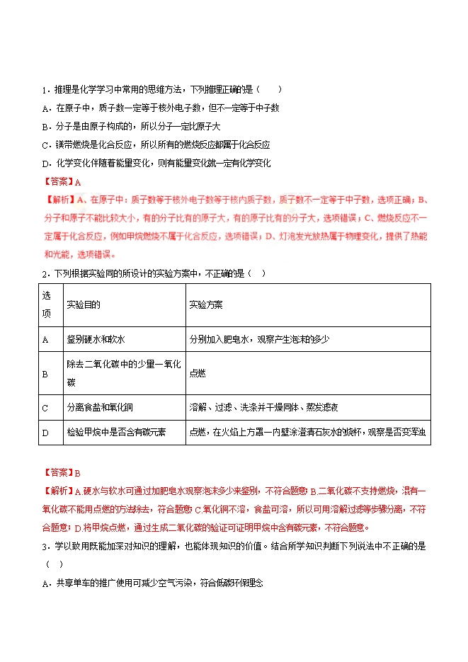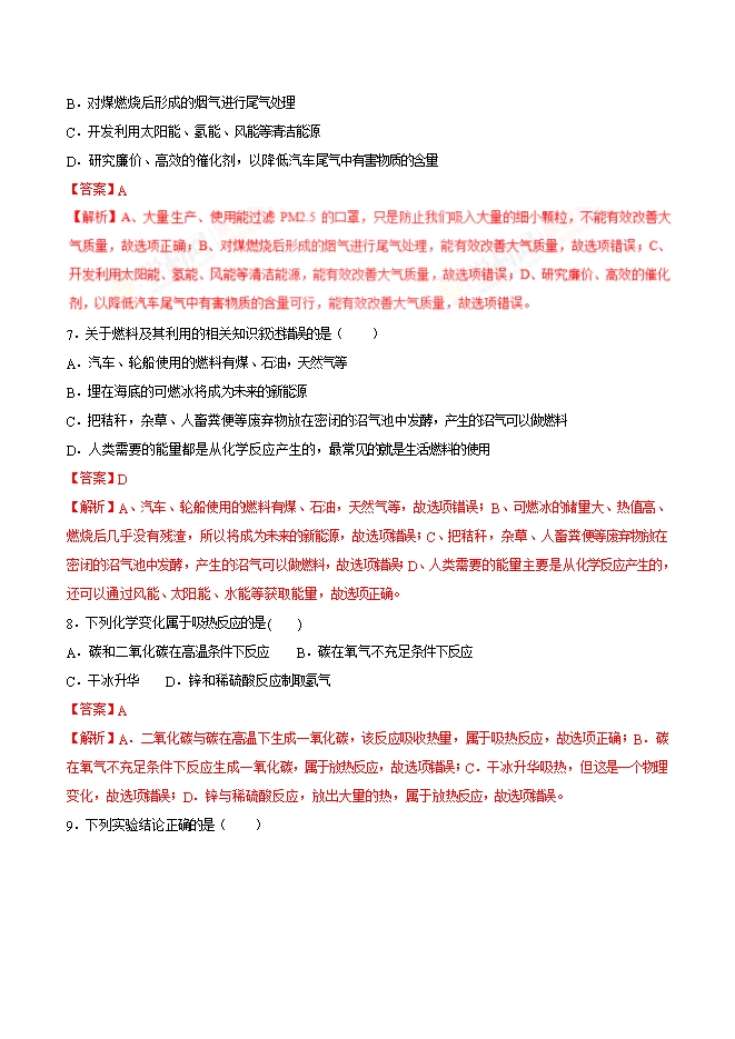 2019年九年级化学中考考点突破考点38 化石燃料与能源开发(解析版)