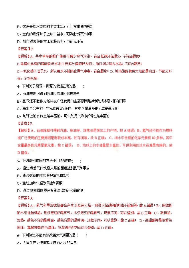 【内容简介】2019年九年级化学中考考点突破考点38 化石燃料与能源开发(解析版)