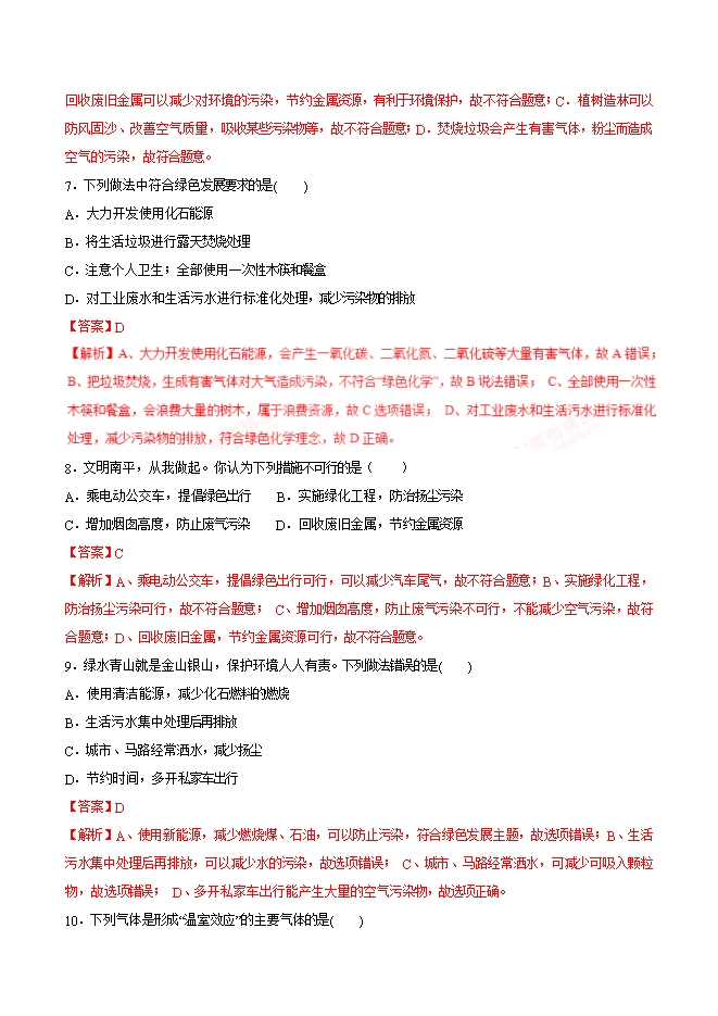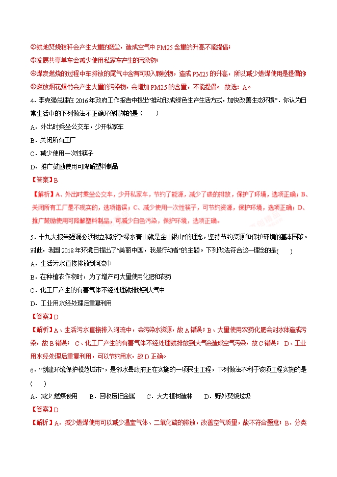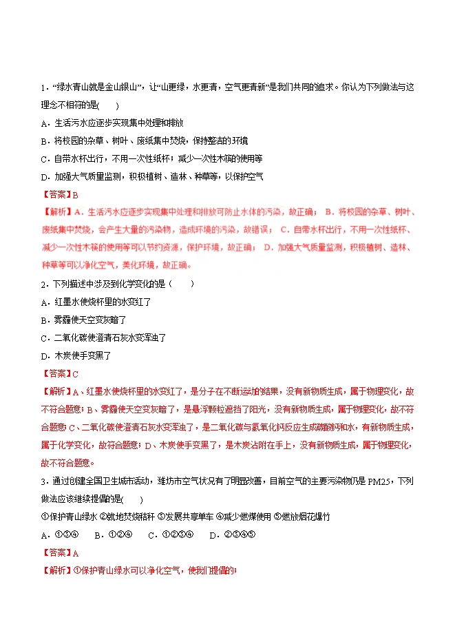 【内容简介】2019年九年级化学中考考点突破考点39 大气污染(解析版)