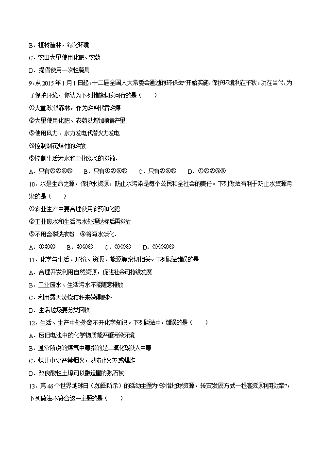 【内容简介】2019年九年级化学中考考点突破考点40 水污染(原卷版)
