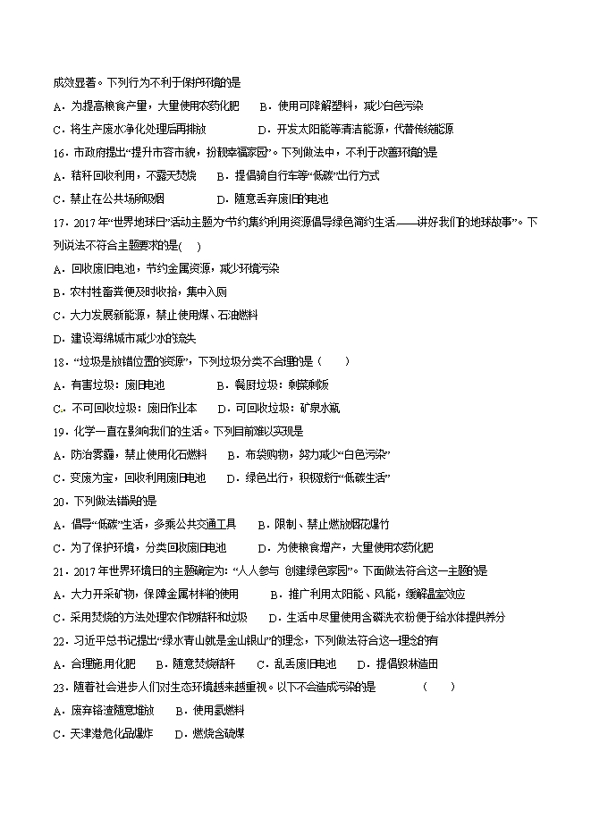 【内容简介】2019年九年级化学中考考点突破考点41 白色污染 (原卷版)