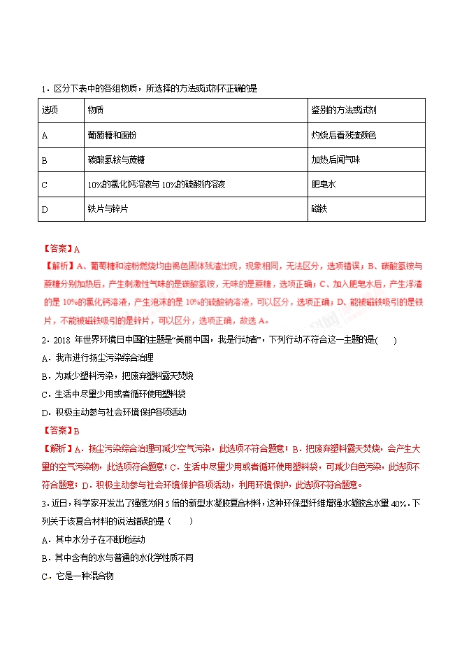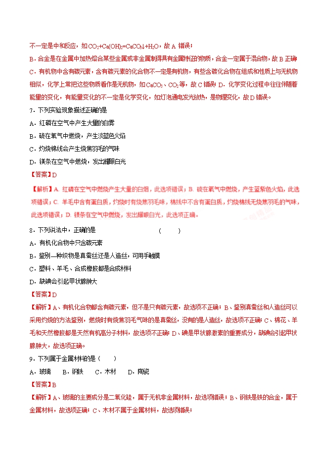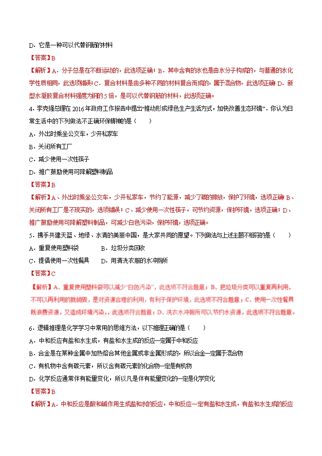 2019年九年级化学中考考点突破考点43 有机合成材料(解析版)
