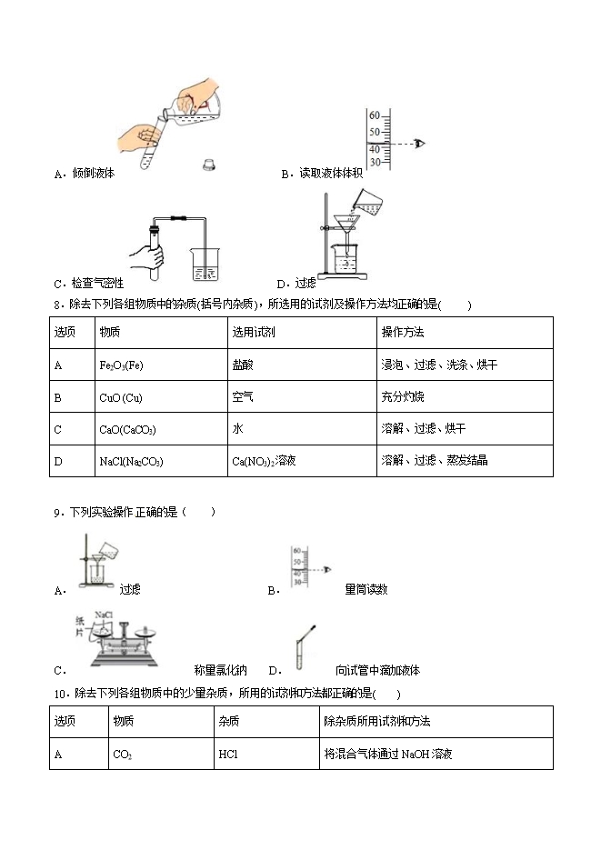 【内容简介】2019年九年级化学中考考点突破考点46 物质的分离提纯(原卷版)