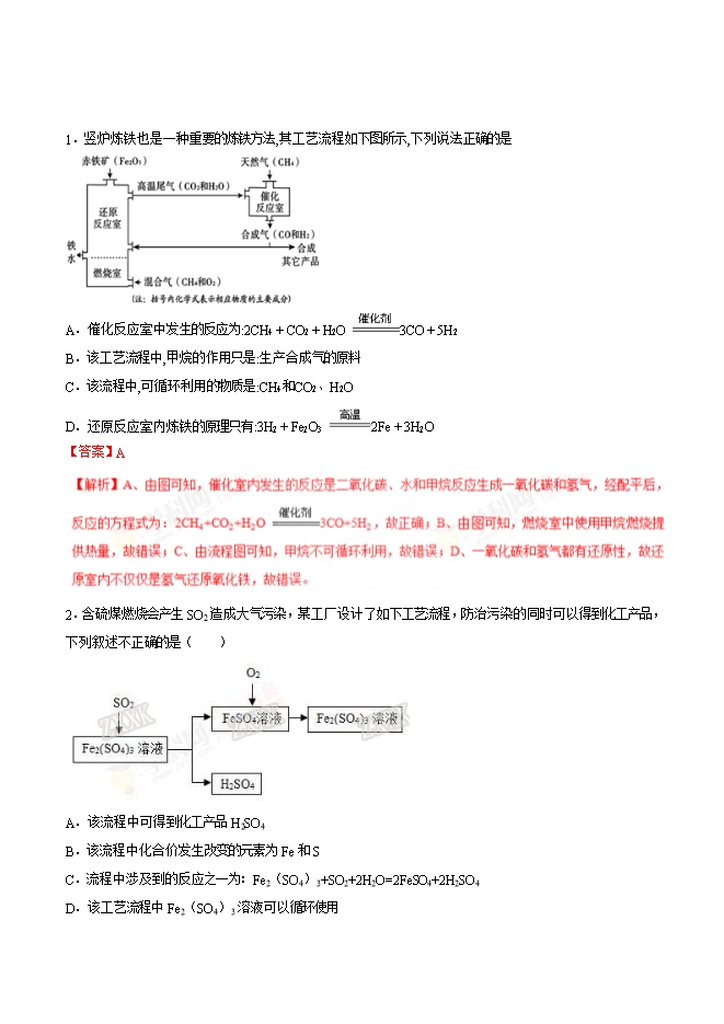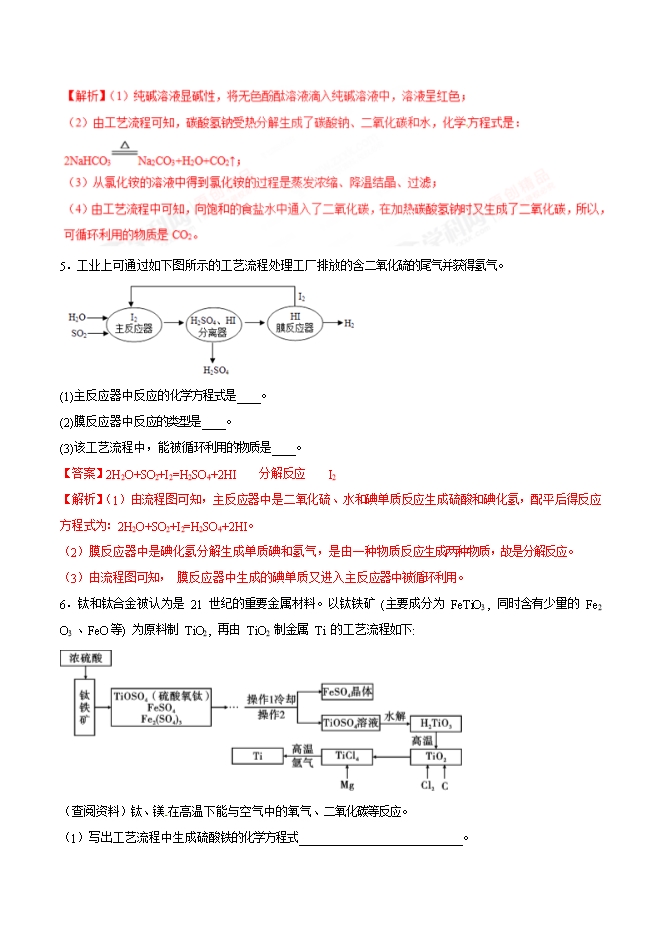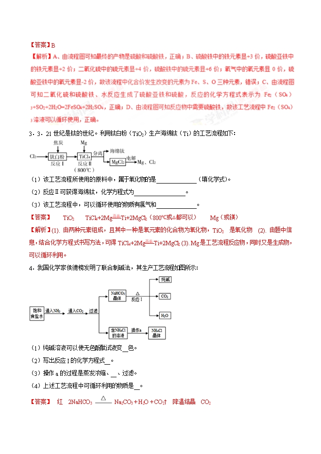 【内容简介】2019年九年级化学中考考点突破考点47 化学工艺流程(解析版)