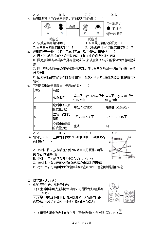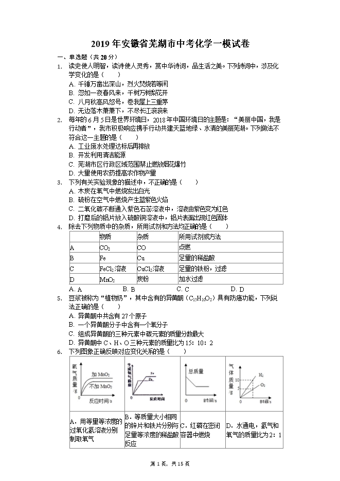 【内容简介】2019年安徽省芜湖市中考化学一模试卷(word版含答案解析)