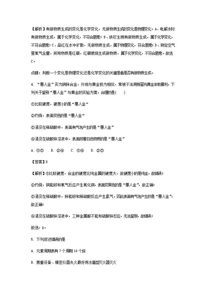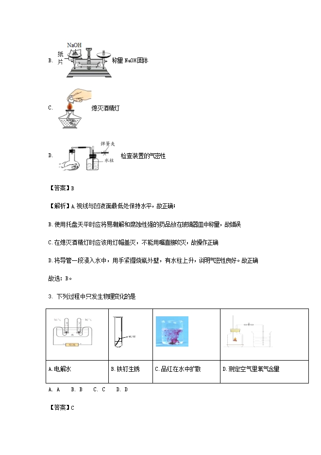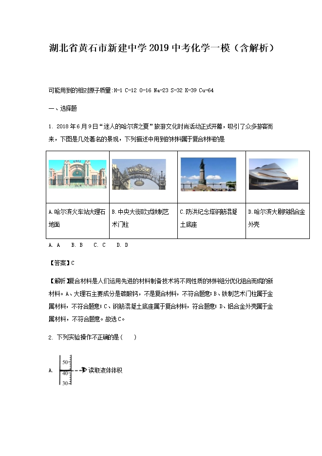 【内容简介】2019年湖北省黄石市新建中学化学一模(word版含答案解析)