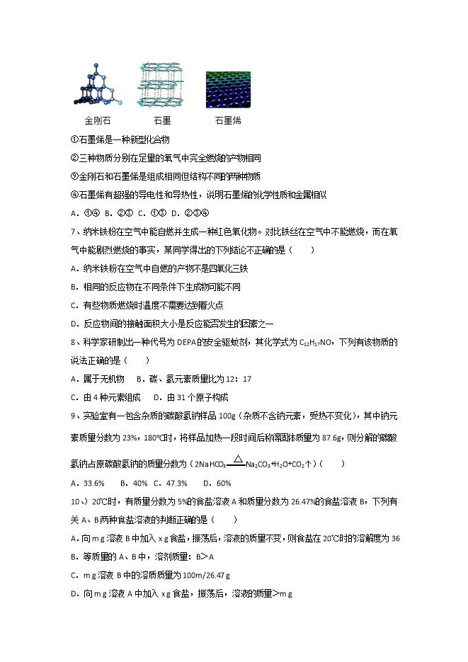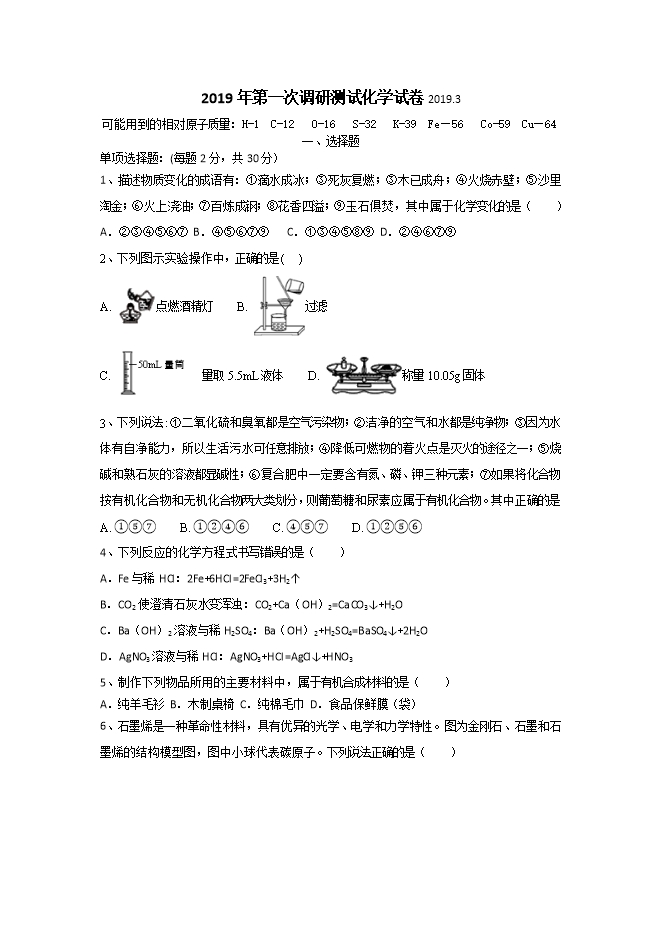 【内容简介】2019年江苏省高邮市朝阳中学第一次调研测试化学试卷(word版有答案)