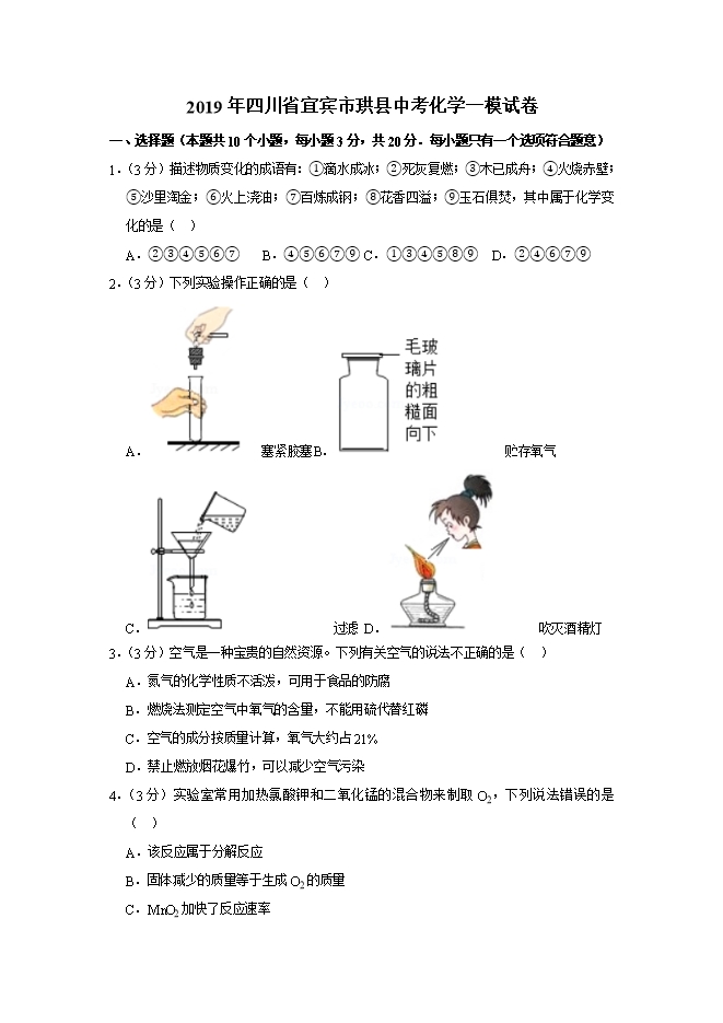 【内容简介】2019年四川省宜宾市珙县中考化学一模试卷(word版含答案解析)