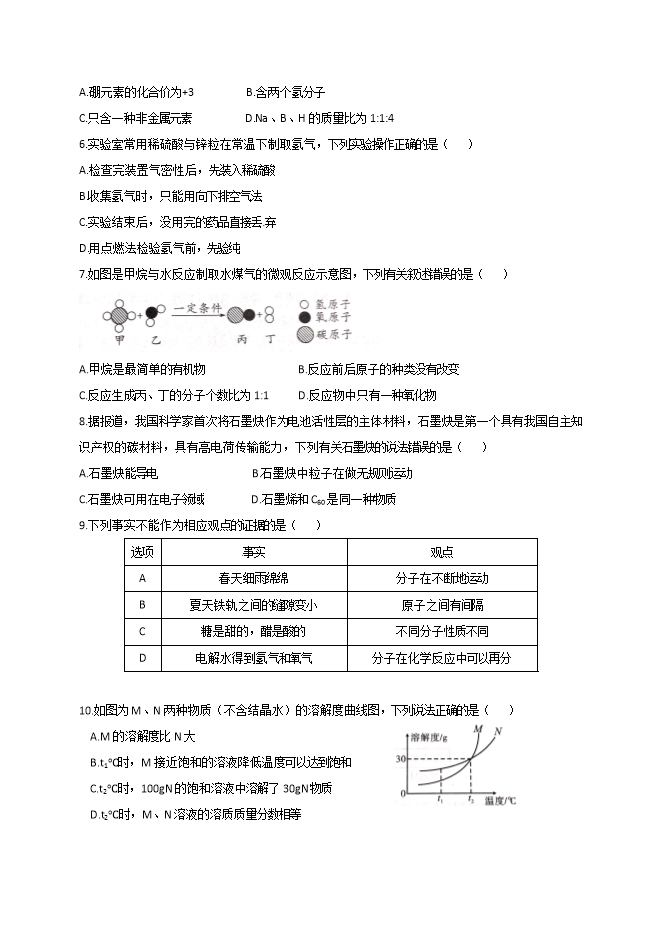 2019届安徽省桐城市第二中学九年级下学期第二次模拟考试化学试题(word版含答案)