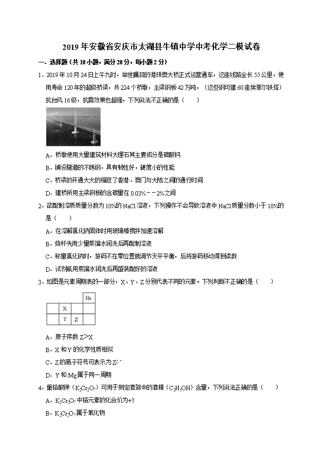 【内容简介】2019年安徽省安庆市太湖县牛镇中学中考化学二模试卷(word解析版)