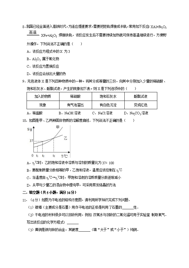 2019年安徽省安庆市太湖县牛镇中学中考化学二模试卷(word解析版)