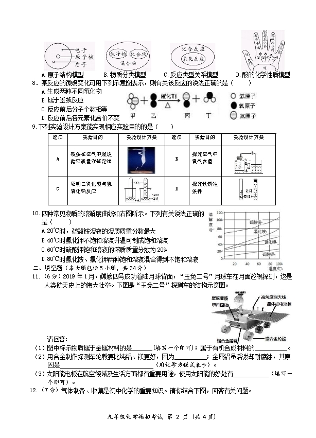 2019年安徽省合肥市瑶海区二模化学试卷(Word版试卷图片答案)