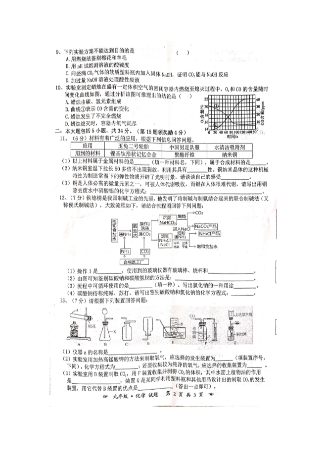 2019年安徽省亳州市利辛中学第二次模拟考试九年级化学试题(图片版试题Word版答案)