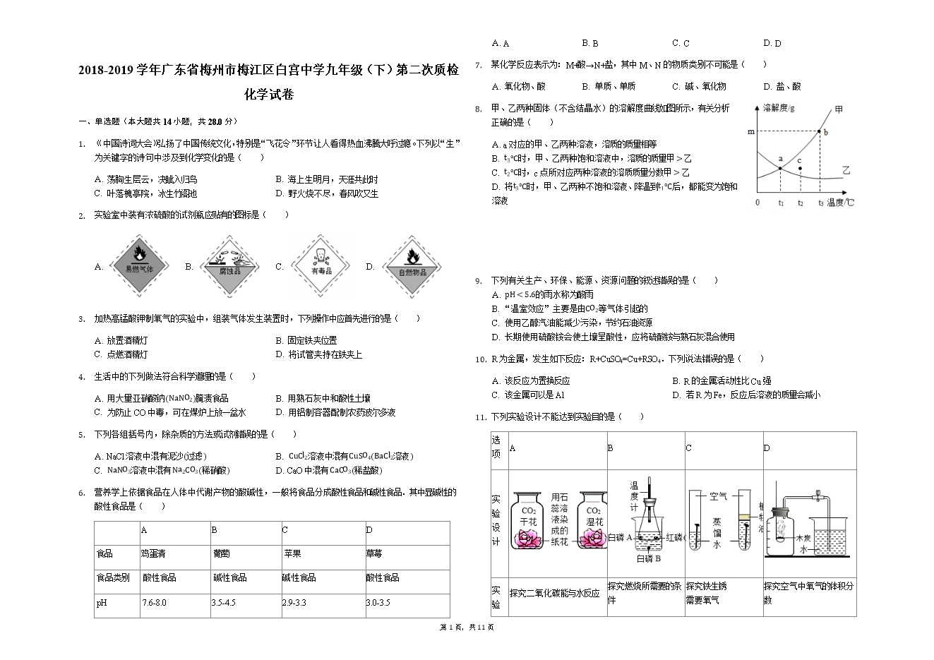 【内容简介】2019年广东省梅州市梅江区白宫中学九年级第二次质检化学试卷(word解析版)