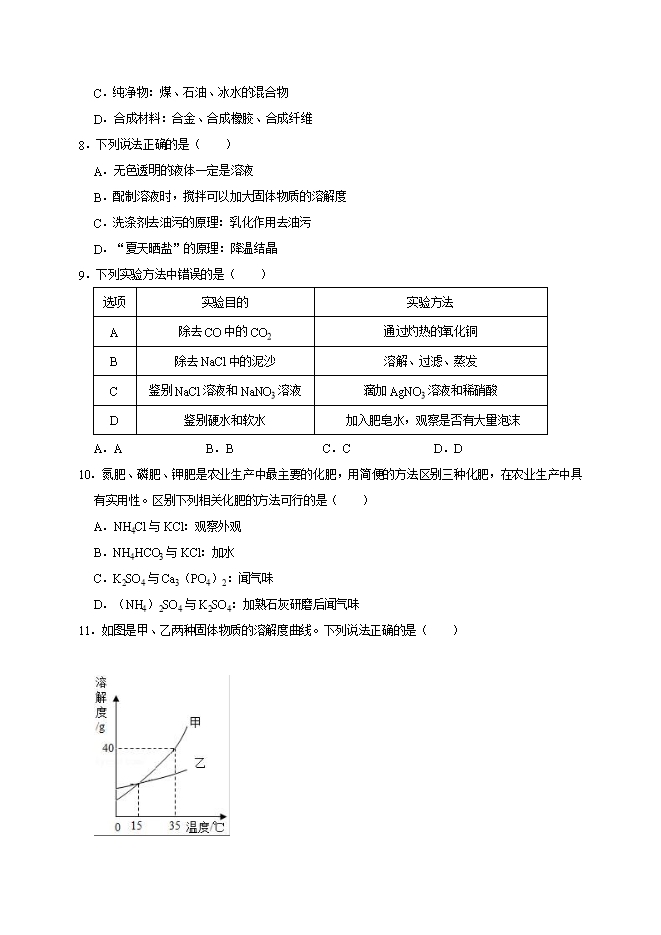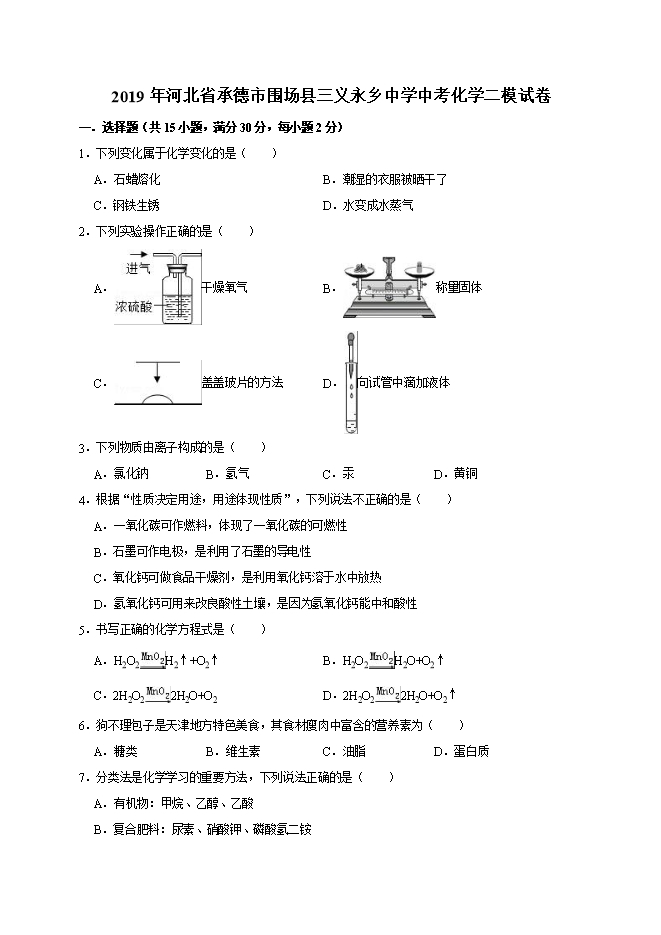 【内容简介】2019年河北省承德市围场县三义永乡中学中考化学二模试卷(word解析版)
