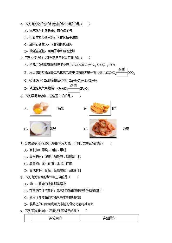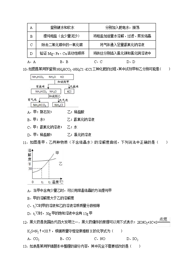 所属专辑: 《2019年全国各地中考化学二模试卷汇总》专辑