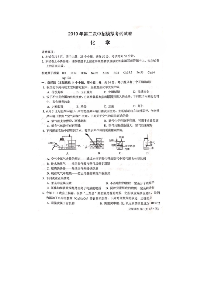 【内容简介】2019年河南百校大联考二模化学试卷(图片版含答案解析)