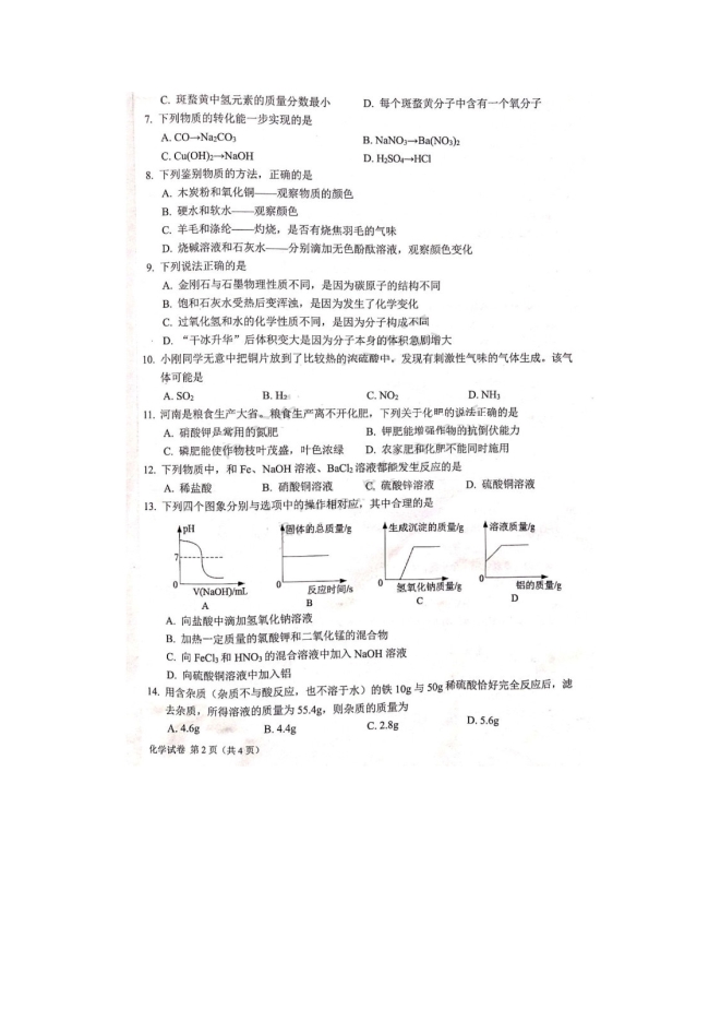 2019年河南百校大联考二模化学试卷(图片版含答案解析)