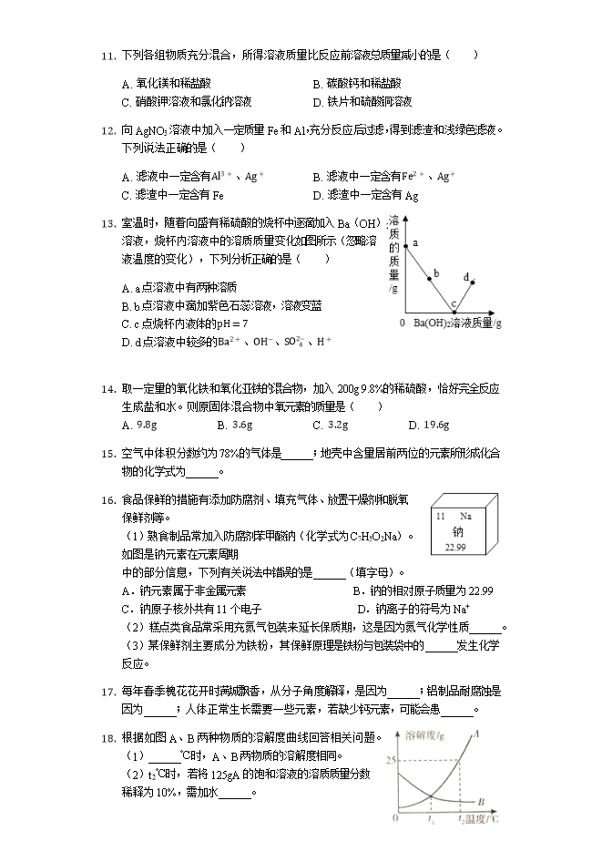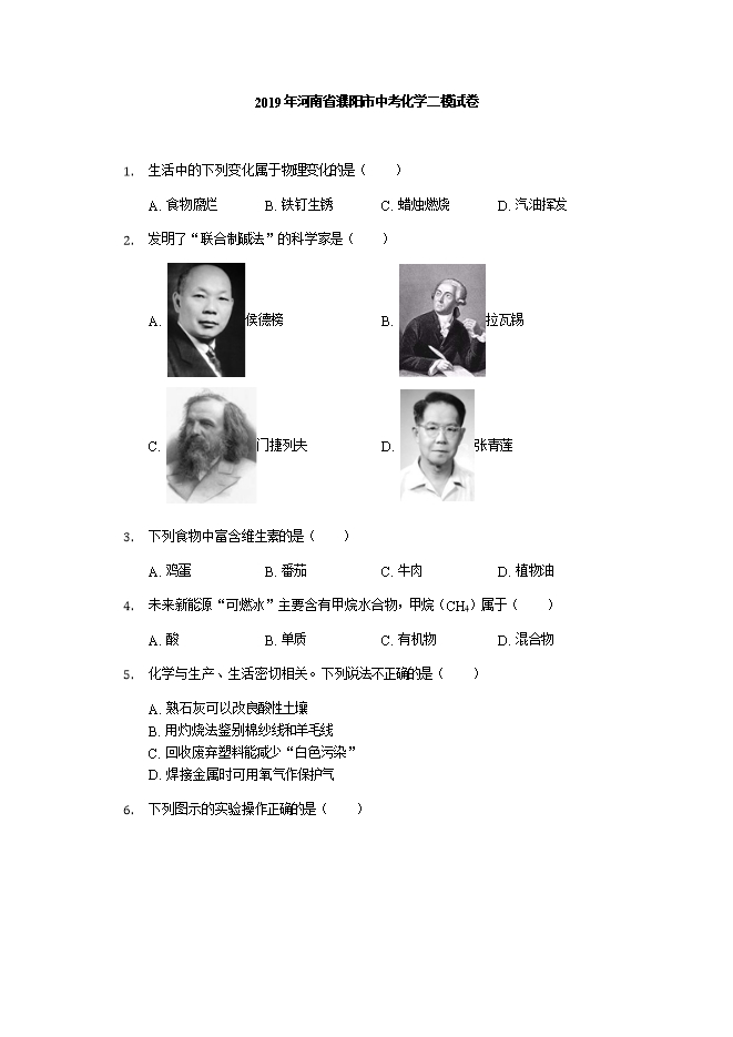 【内容简介】2019年河南省濮阳市中考化学二模试卷(word版含答案解析)