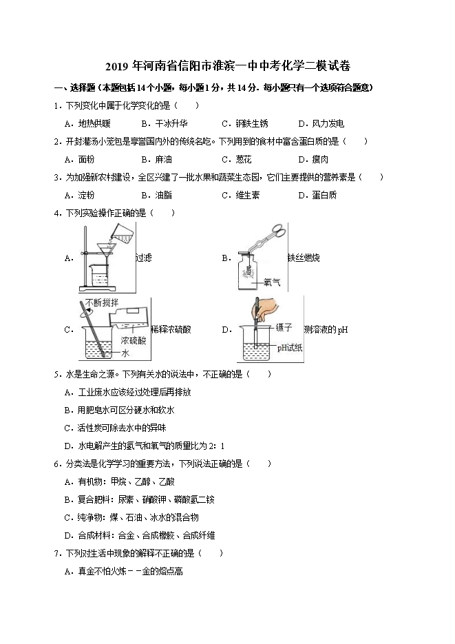 【内容简介】2019年河南省信阳市淮滨一中中考化学二模试卷(word版含答案解析)