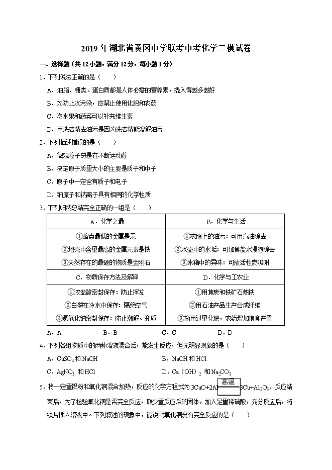 【内容简介】2019年湖北省黄冈中学联考中考化学二模试卷(word解析版)