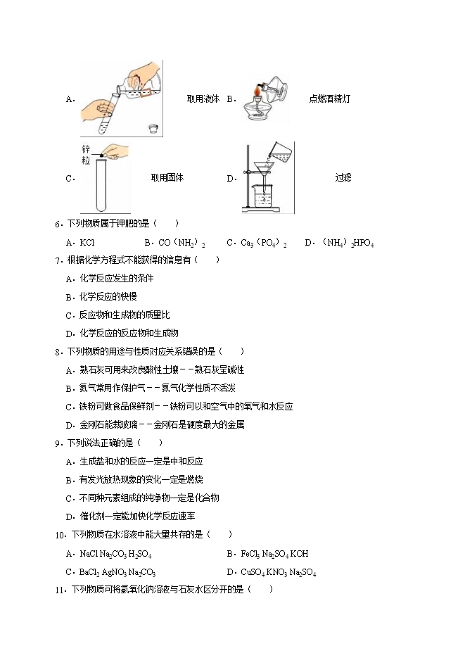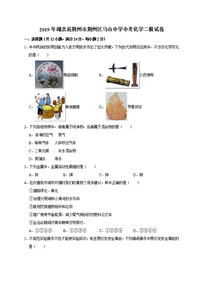 【内容简介】2019年湖北省荆州市荆州区马山中学中考化学二模试卷(word解析版)