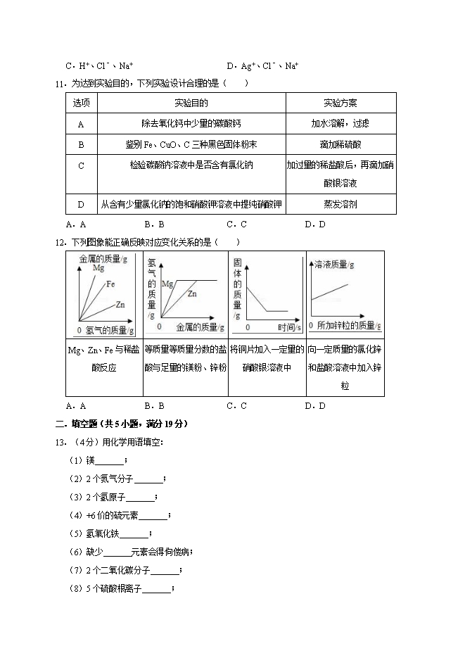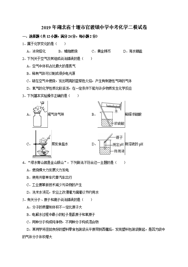 【内容简介】2019年湖北省十堰市官渡镇中学中考化学二模试卷(word解析版)