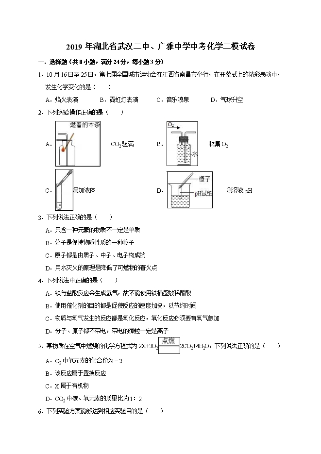 【内容简介】2019年湖北省武汉二中、广雅中学中考化学二模试卷(word解析版)