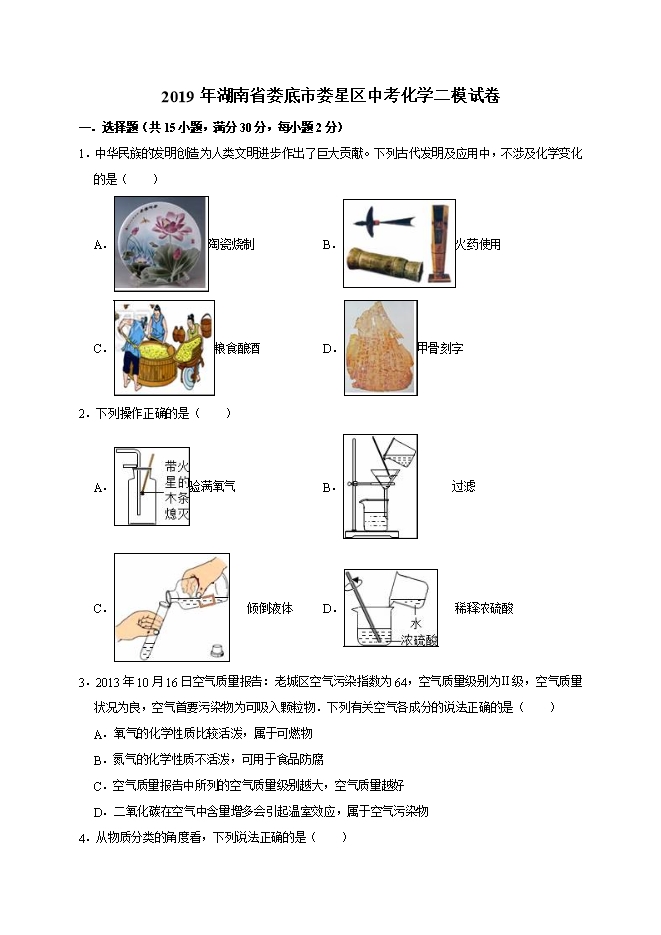 【内容简介】2019年湖南省娄底市娄星区中考化学二模试卷(word解析版)