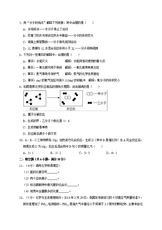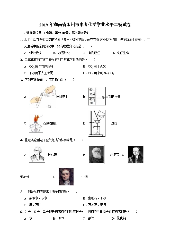 【内容简介】2019年湖南省永州市中考化学学业水平二模试卷(word解析版)