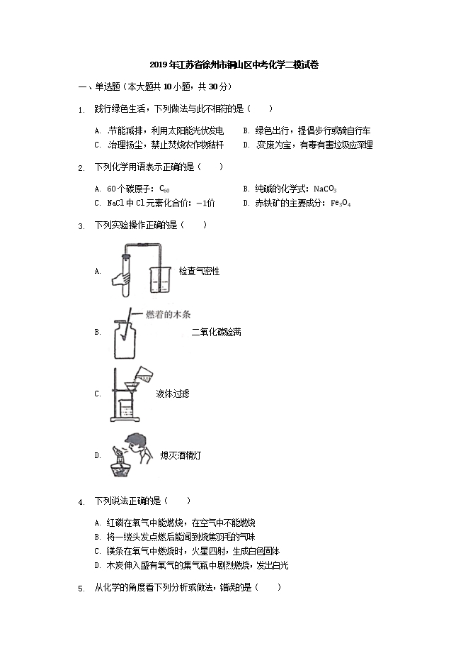 【内容简介】2019年江苏省徐州市铜山区中考化学二模试卷(word解析版)