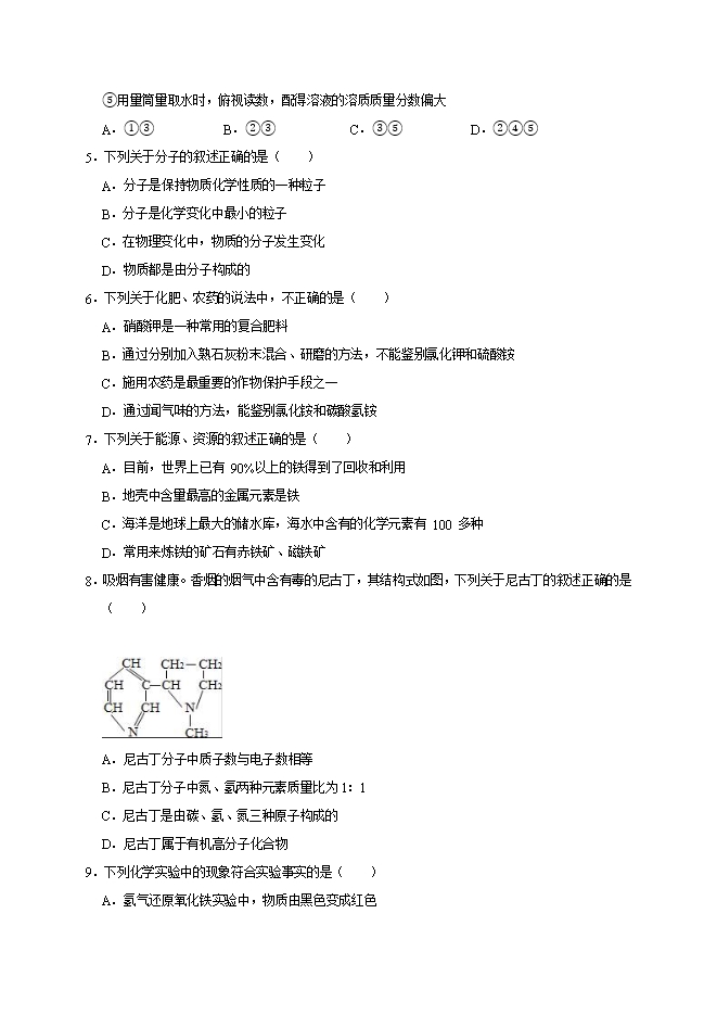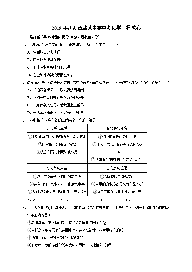 【内容简介】2019年江苏省盐城中学中考化学二模试卷(word解析版)