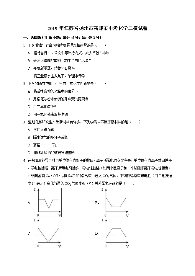 【内容简介】2019年江苏省扬州市高邮市中考化学二模试卷(word解析版)