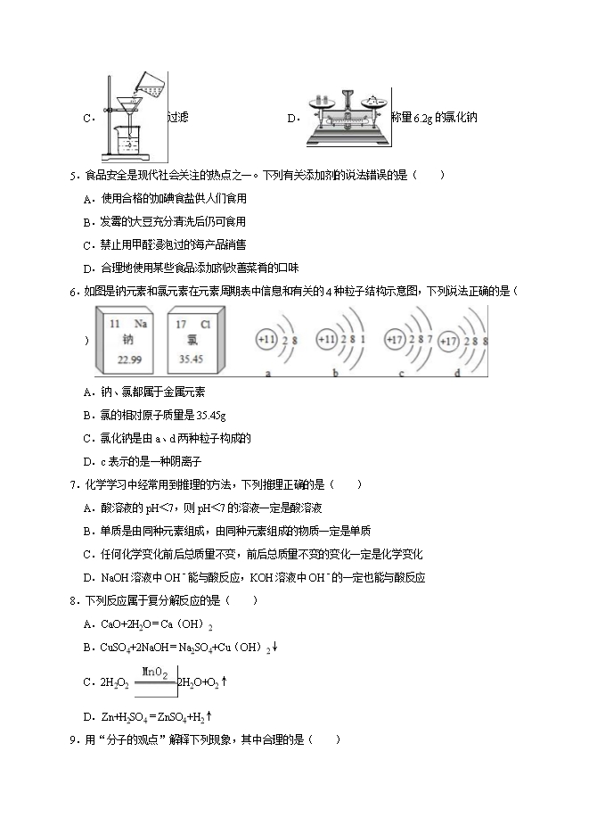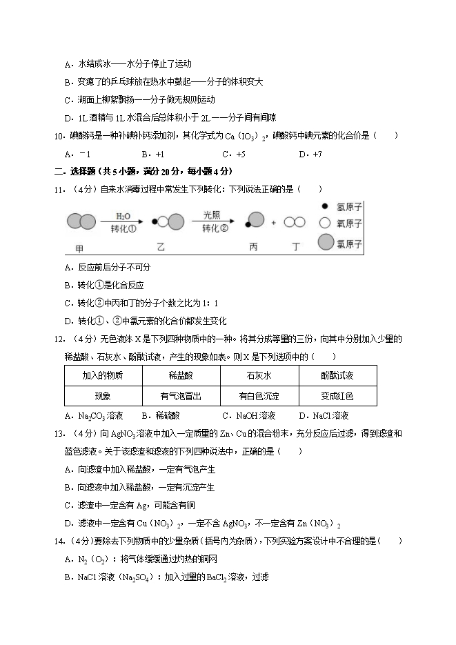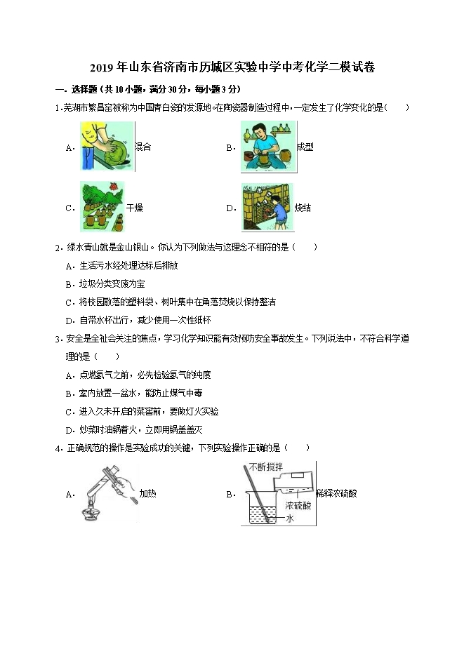 【内容简介】2019年山东省济南市历城区实验中学中考化学二模试卷(word解析版)